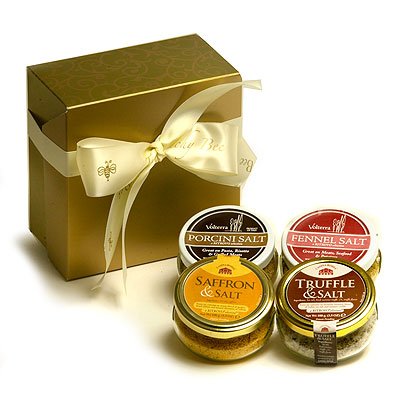 Purchase all four Casina Rossa Gourmet Salts and save 10%! Truffle Salt - Italian sea salt mixed with luxurious dried Black truffles harvested from the Abruzzi region of Italy. Try truffle salt over cooked egg dishes, tossed in pasta, on pate or foie gras and served with a glass of spumante! Fennel Salt - Delicious on grilled halibut, or over grilled vegetables, and in salad dressing. Saffron Salt - Gorgeous red strands of saffron blended with sea salt in another condiment reflecting one of abruzzo's great food traditions. Try it on grattini pasta or in fresh ricotta. Porcini Mushroom Salt - Richly flavored by Casina Rossa with sun-dried porcini, onions, garlic, and herbs, it is a natural rub for halibut and chicken, and a great compliment to risotto, roasted mushrooms, and game meats. Reg. Gift Boxed as shown.